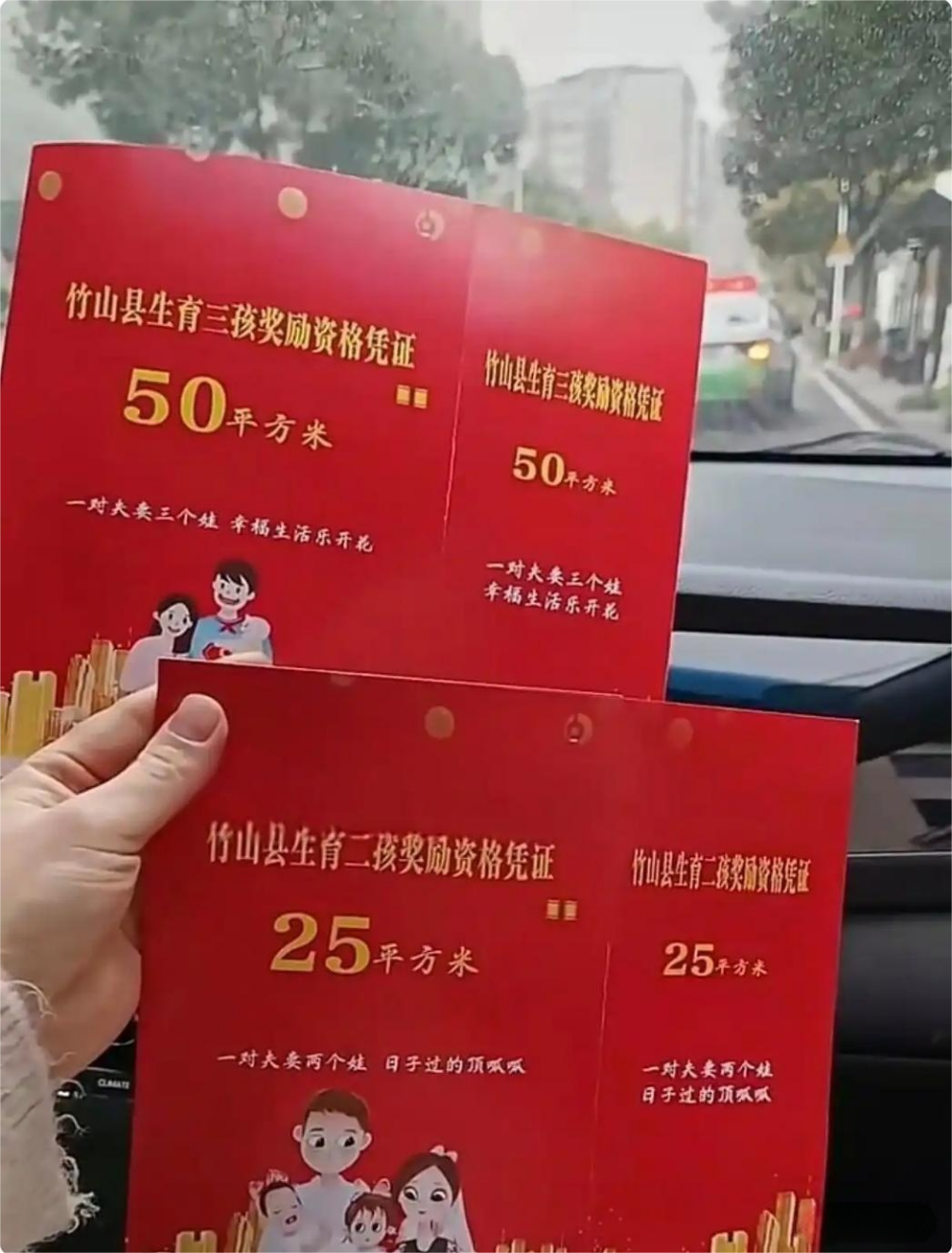 近期,有网友晒出一张“竹山县生育二孩奖励资格凭证”和一张“竹山县生育三孩奖励资格凭证”,走红网络。
